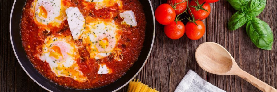 תוכלו למצוא שקשוקה אדומה עם עגבניות וביצים או שקשוקה לבנה עם שמנת, תרד וביצים.