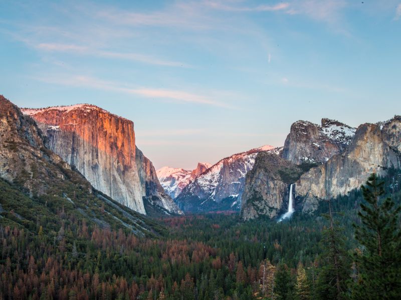 עמק יוסמיטי, שצוקי גרניט מתנשאים משני צידיו, הוא האזור המתוייר ביותר בפארק, בו מתרכזים מרבית התיירים. שניים מהצוקים היותר מרשימים ומפורסמים הם צוק "אל קפיטן" (El Capitan), המהווה יעד פופולרי למטפסים, ו"הכיפה החצויה" (Half Dome), המתנשא לגובה 1,400 מעל לעמק.
